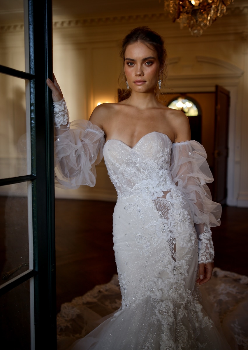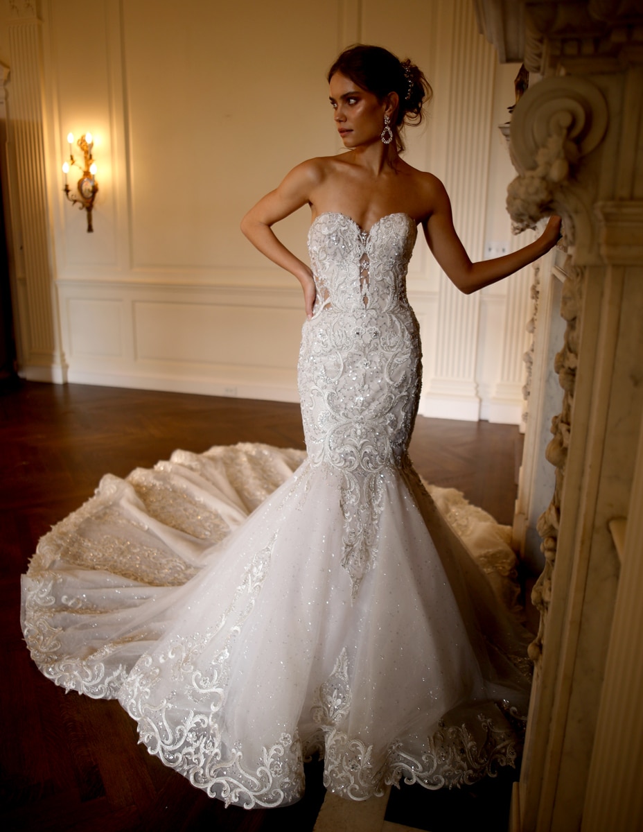 Amalia Carrara delivers all the grandeur and elegance a bride could possibly want. This sister line to Eve of Milady offers brides the same drama and excellent fit, then takes it all to the next level. Amalia Carrara wedding dresses offer more fabric, detail, panache, and her signature Swarovski crystals. Bodices are exquisite, creating enviable hour glass shapes, with styles from empire to trumpet to classic bridal ball gowns.