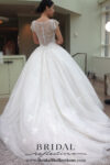 Bust Line adored with guipure lace appliques and finished with extended chapel length train.