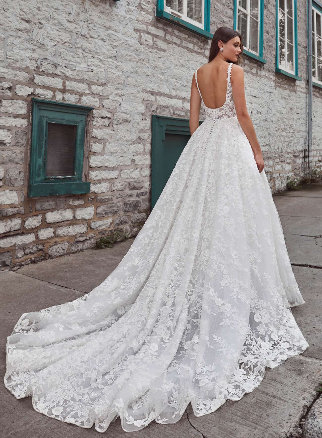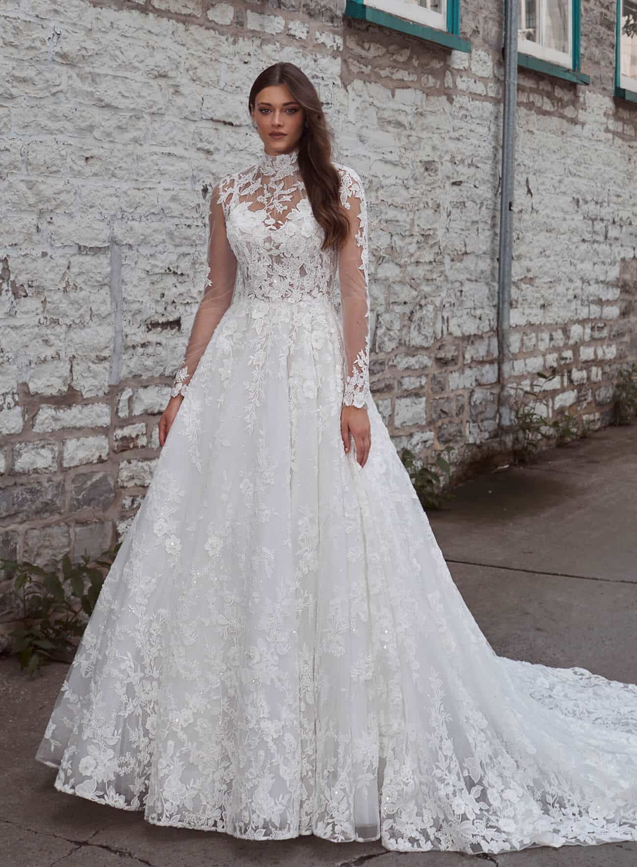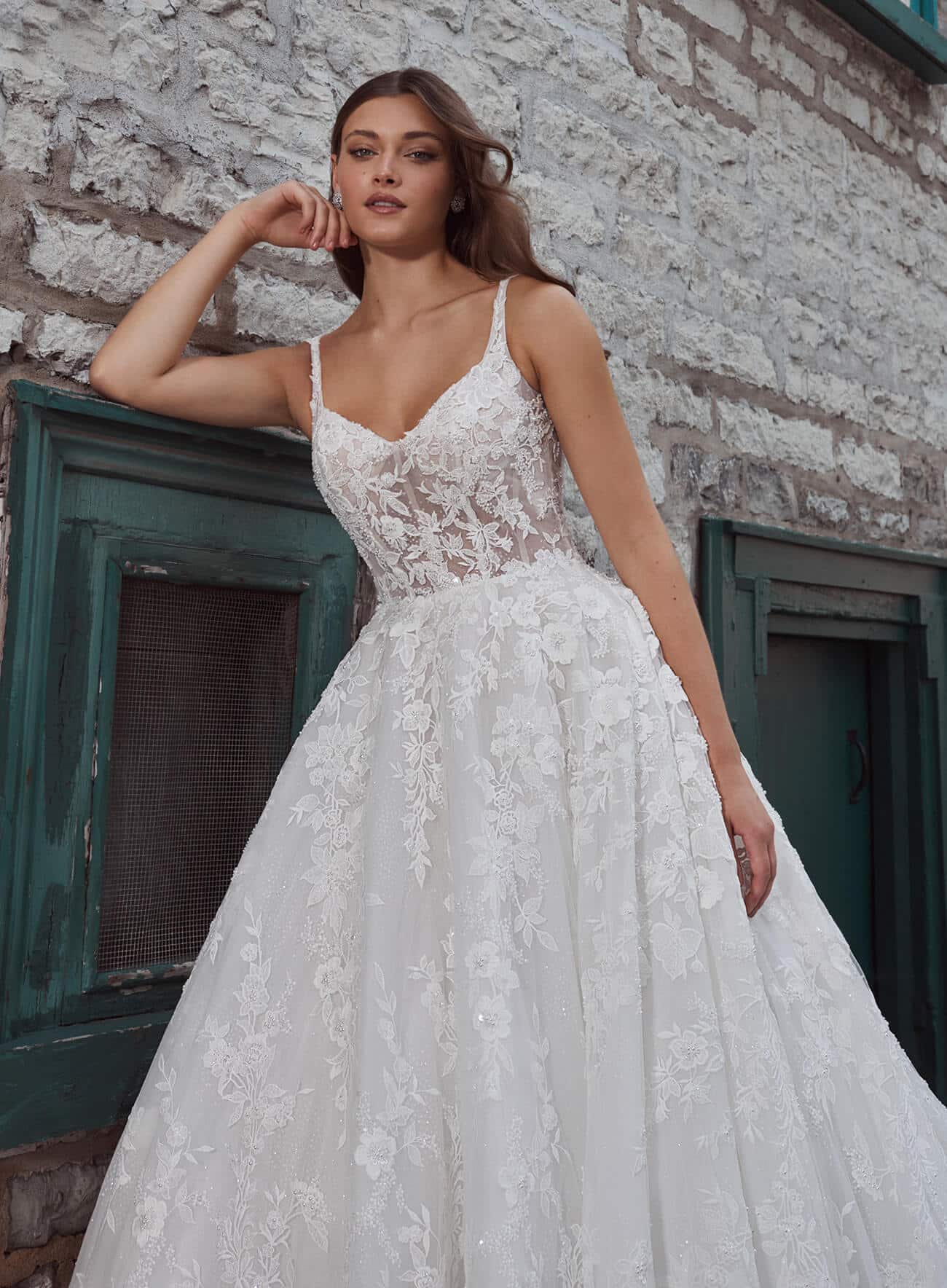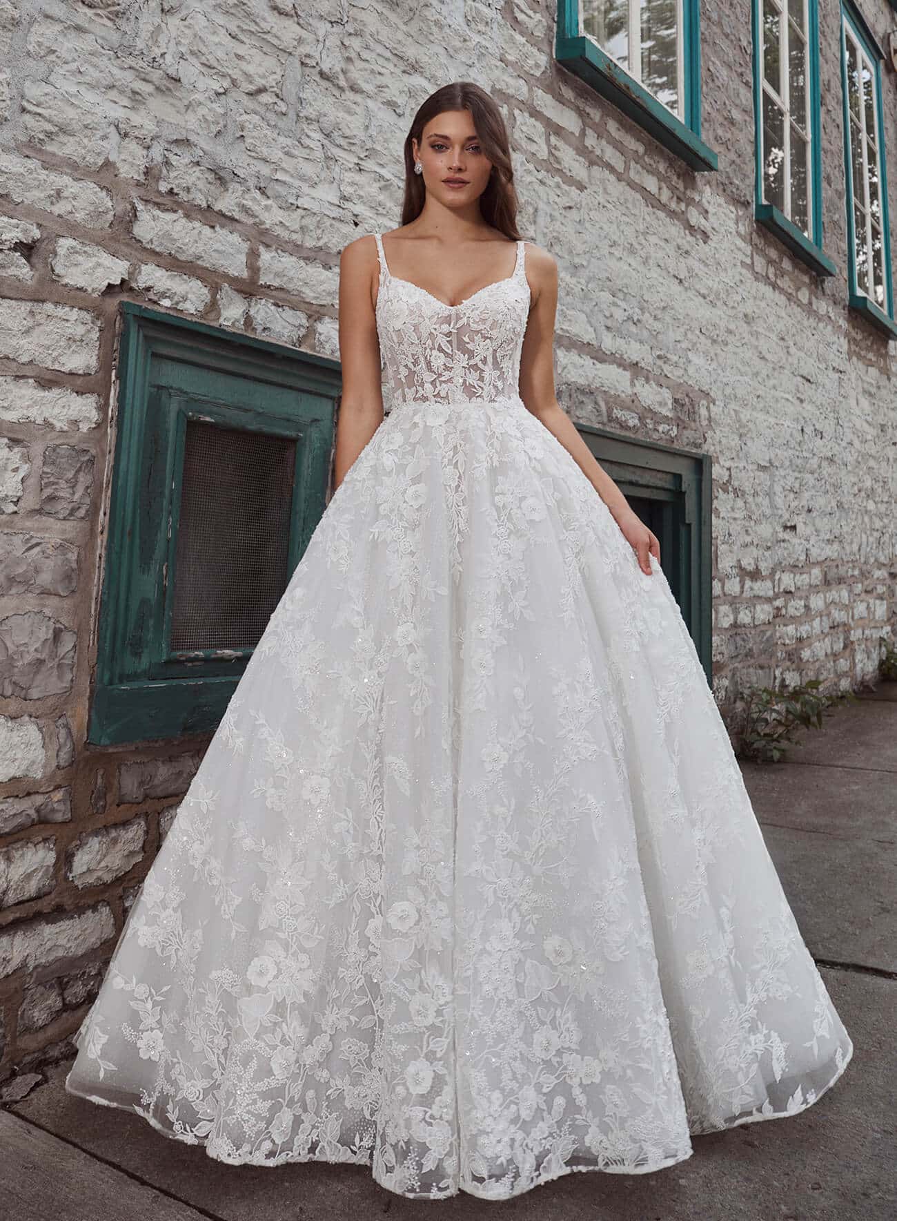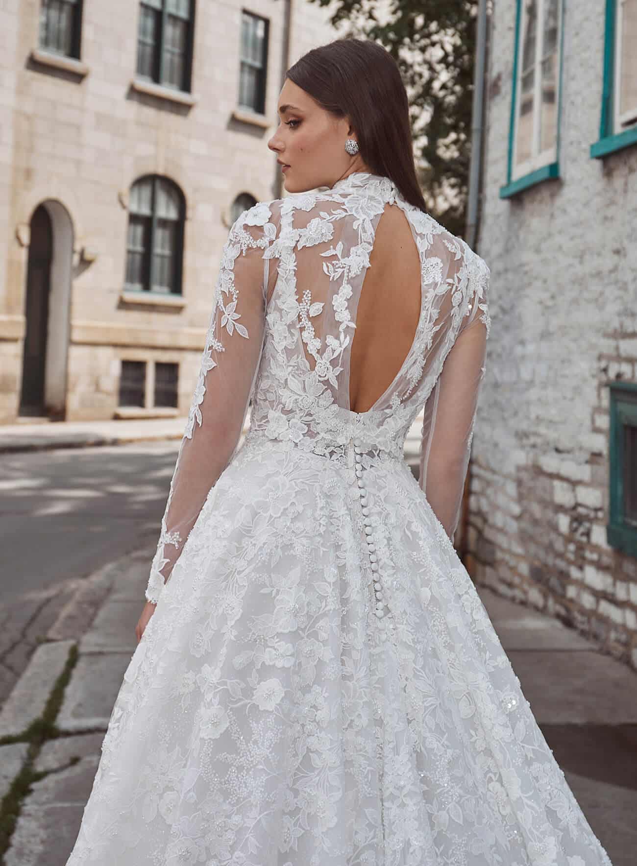 The moment brides try on Krishna, they will be instantly transported into a classic fairy-tale where they are the princess who finally gets to marry their prince or princess. Crafted with exquisite lace, this design boasts a timeless ball gown silhouette, an enchanting sweetheart neckline, and delicate spaghetti straps that provide an irresistible touch. Krishna’s charm is further accentuated by a daring backless design, while pockets ensure both grace and practicality. And let’s not forget her detachable long sleeve jacket which offers a touch of modesty with its high neckline and a mesmerizing keyhole back.