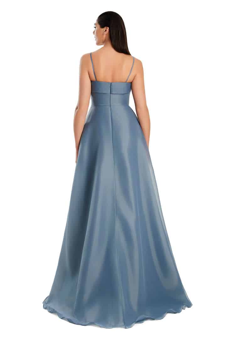 A chic straight-across neckline with spaghetti straps and fold-over detail provides a timeless appeal, while the included wrap jacket adds versatility. Designed with a quarter-length sleeve, collared and a self-tie belt, the jacket creates a polished look that flatters the silhouette.