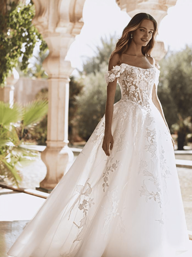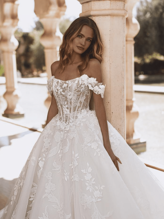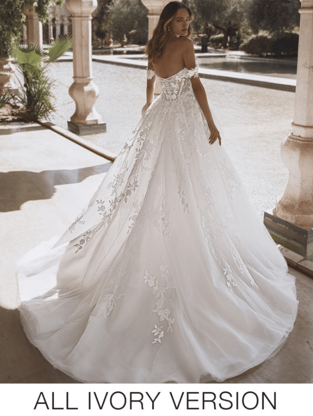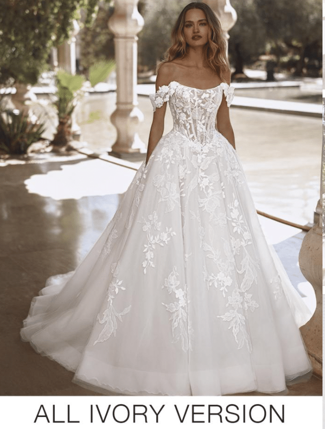 Introducing Vouge, a fairytale masterpiece designed for the modern romantic. This off-the-shoulder ballgown stuns with its structured, corset-style bodice—crafted from sheer organza and adorned with dimensional embroidered floral lace that gently trails into the voluminous tulle skirt. The soft drape of the neckline and delicate floral appliqué straps add a touch of enchantment, perfectly balancing elegance with femininity. Layers of organza and tulle create dreamy movement, while the sculpted silhouette offers both support and allure. Available in three elegant shades—Ivory/Sand/Nude*, Ivory/Ivory/Nude, and Ivory/Ivory/Ivory—Vouge is the embodiment of timeless romance with a couture twist.