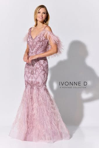 Showcase your style in this ultra-glamorous fit-and-flare gown. Featuring an elegant v-neckline and flattering 3/4 length sleeves, this stunning gown is the perfect blend of timeless elegance and refined drama. Opulent sparkling beadwork and a semi-sheer illusion sweep train with fabulous feather detailing guarantee an unforgettable entrance.