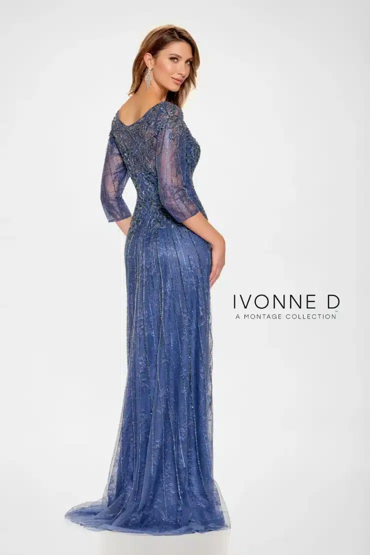 Exude elegance and grace in this Fit and Flare gown. The luxurious tulle fabric, embellished with shimmering beads and sparkling stone accents creates a dazzling effect, while Allover lace adds a touch of romance. Ultra-flattering illusion sleeves and a spectacular semi-sheer back complete this stunning gown.