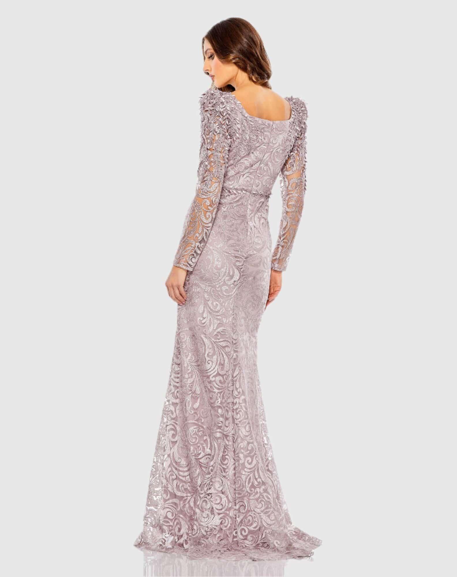 Gold Embroidered Lace Applique Shoulder Detail Trumpet Gown