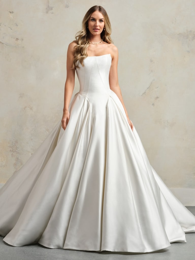Indulge in timeless elegance with our Cartago satin wedding gown, featuring exquisite topstitch corset detailing on the bodice for a touch of sophistication. The strapless cat-eye neckline adds a classic charm, while the Kahili recycled content lining in the All Ivory colorway embraces sustainability. With a lace-up corset closure and convenient pockets, this gown offers both style and practicality on your special day, now available in striking black for added versatility and modern flair.