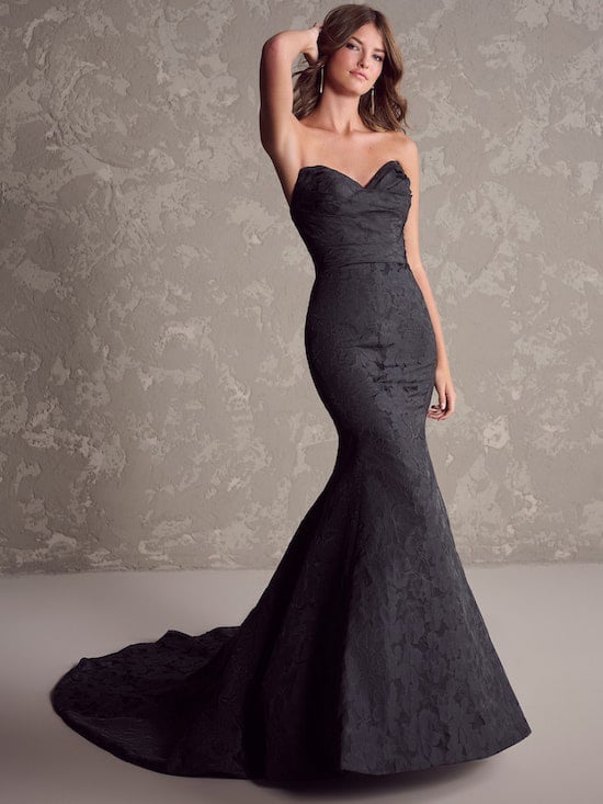Fit-And-Flare Jacquard Bridal Dress With Floral Fabric And Pleated Bodice