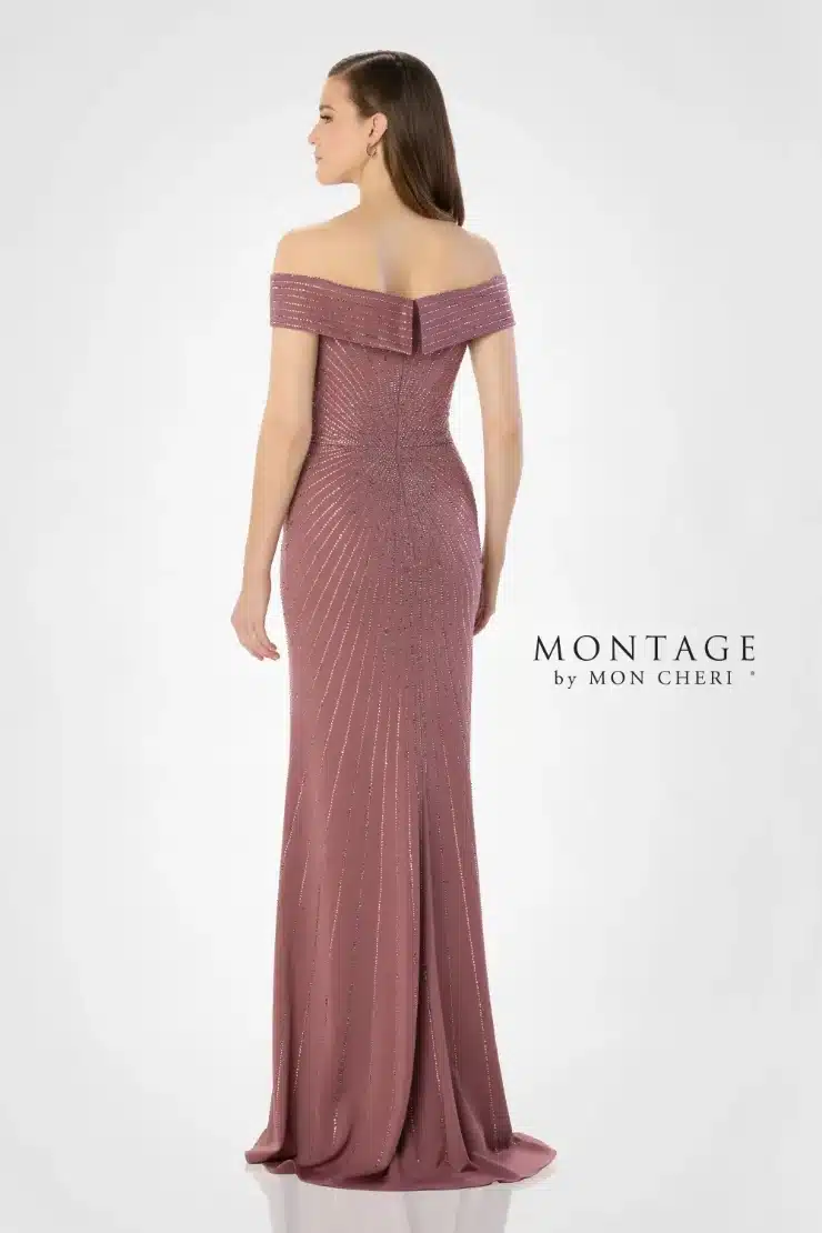 Dazzle the crowd in this exquisite A-line gown. The flattering off-the-shoulder v-neckline is complemented by an elegant portrait collar that exudes timeless charm and sophistication. Thoughtfully placed sparkling stone embellishments create the illusion of a smaller waist and elevate the glamour of this spectacular gown.