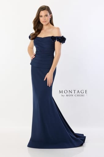 Have your very own red carpet moment in this fabulous off-the-shoulder fit and flare gown. With its stunning 3D floral accents and an ultra-flattering pleated bodice, this gown is the epitome of effortless elegance. Delicate covered buttons and a show stopping sweep train complete this one-of-a-kind Mother of the Bride style.