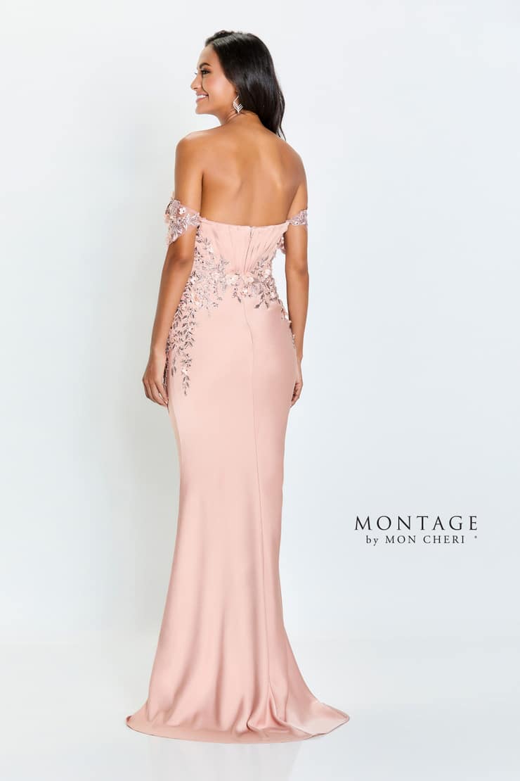 Strapless satin gown w/ off the shoulder straps, beautiful embroidery and a ruched detail along the bodice for a unique and eye-catching look. The dress features a fitted silhouette and a long skirt for a timeless style. W/ shawl & detachable lace straps.