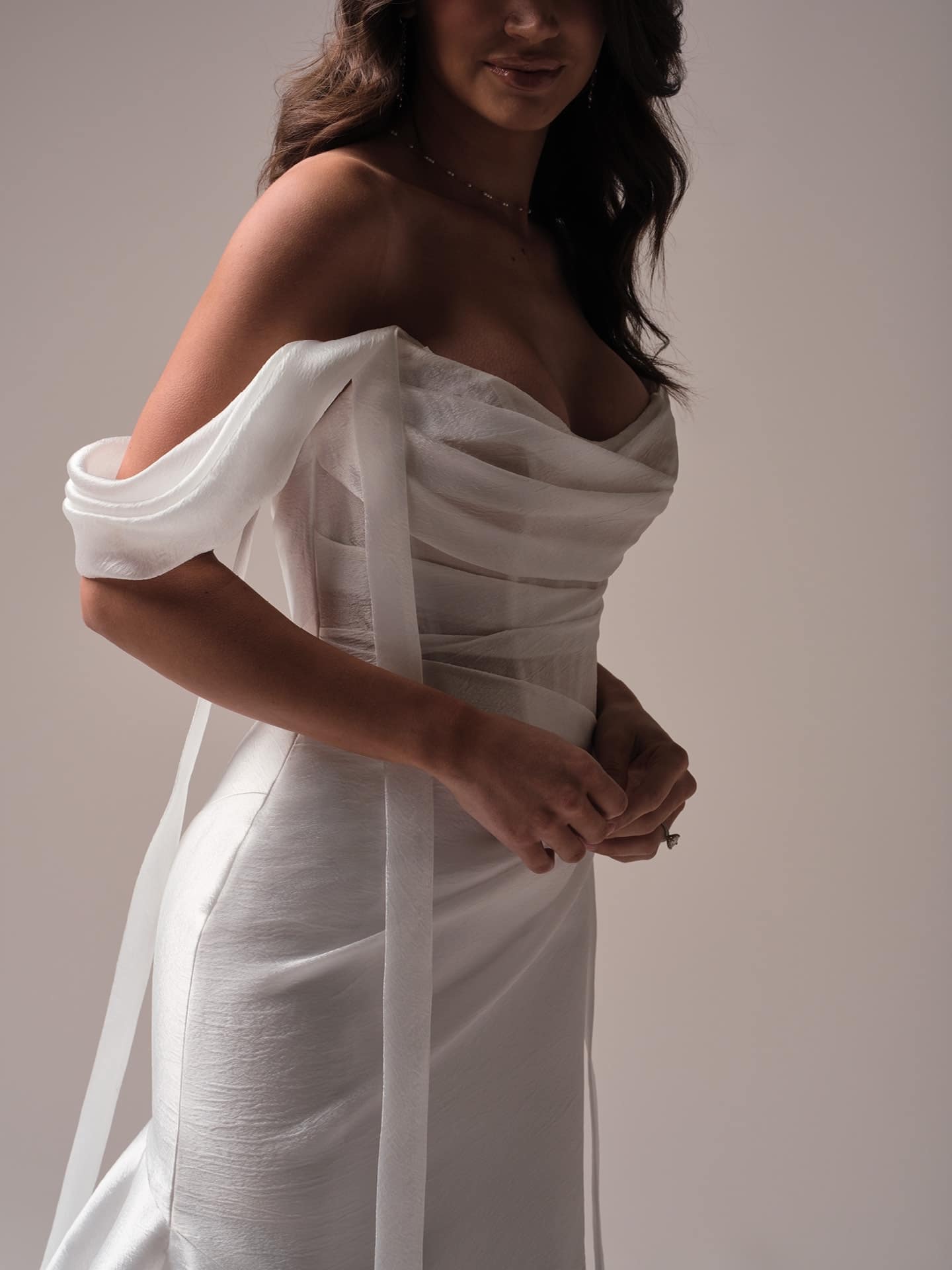 This organza asymmetrical mermaid wedding dress deserves the glitziest of aisle walks.
