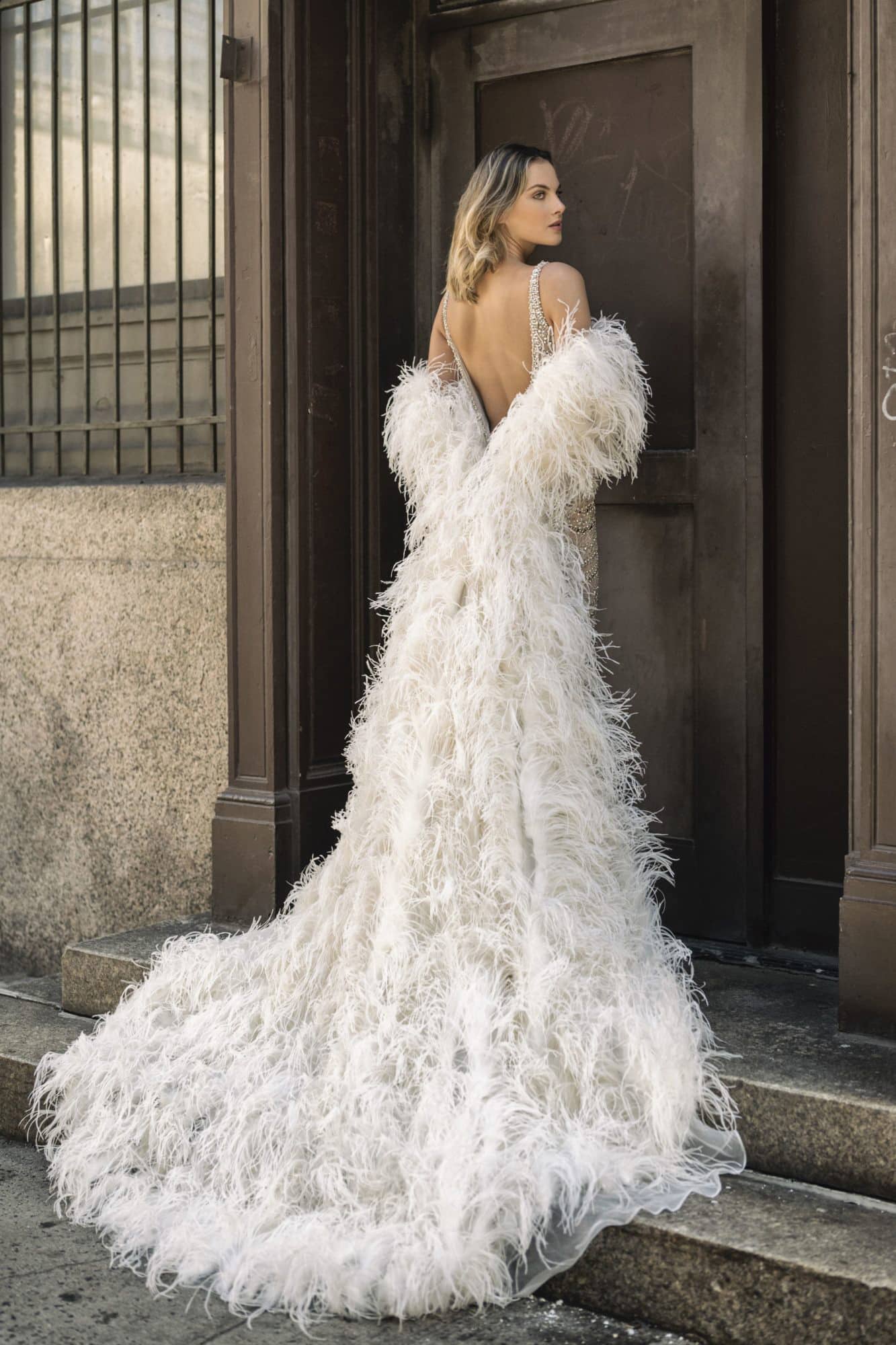 Sleeveless Deep V-Plunge W. Illusion, Open Low Back Fitted Gown All Beaded And Crystal Design Sweep
