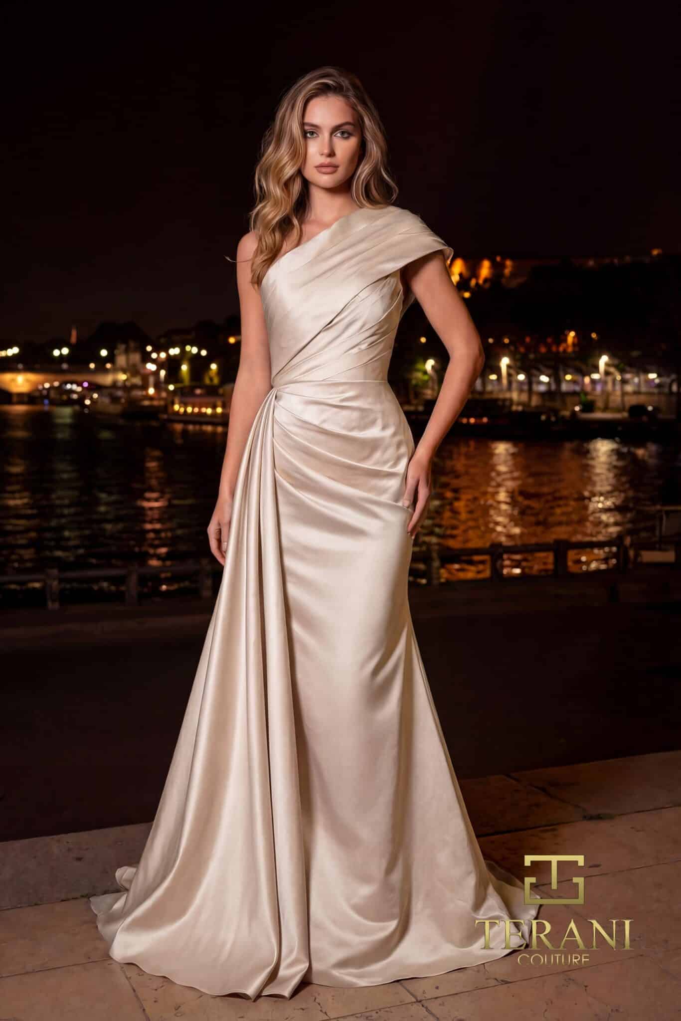 Asymmetric One-Shoulder Stretch Mikado Fit & Flare Gown