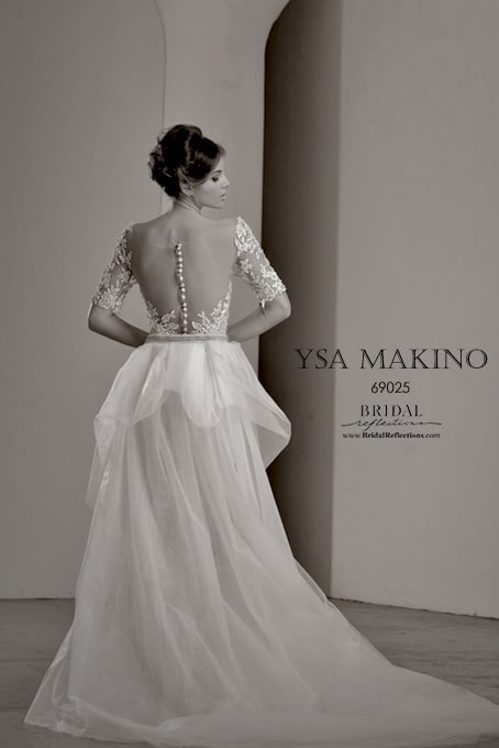 Adorned with a beaded belt detail that adds a touch of elegance, this wedding gown is further enhanced by a charming bustle bow at the back. The delicate detailing creates a refined and sophisticated look, ensuring the bride exudes timeless beauty on her special day.