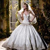 Eve of Milady is known for luxurious intricacies, fabulous bodices and lovely formal ball gowns. These gowns feature sparkling crystals, tulle and lace, hand done beading, and trademark scroll patterns. These intricacies make Eve of Milady one of the most lavish of designer wedding dresses, seeming fit for a royal wedding, with silhouettes to best compliment every bride’s figure, whether it’s a bridal ball gown, fit and flare, or trumpet gown.