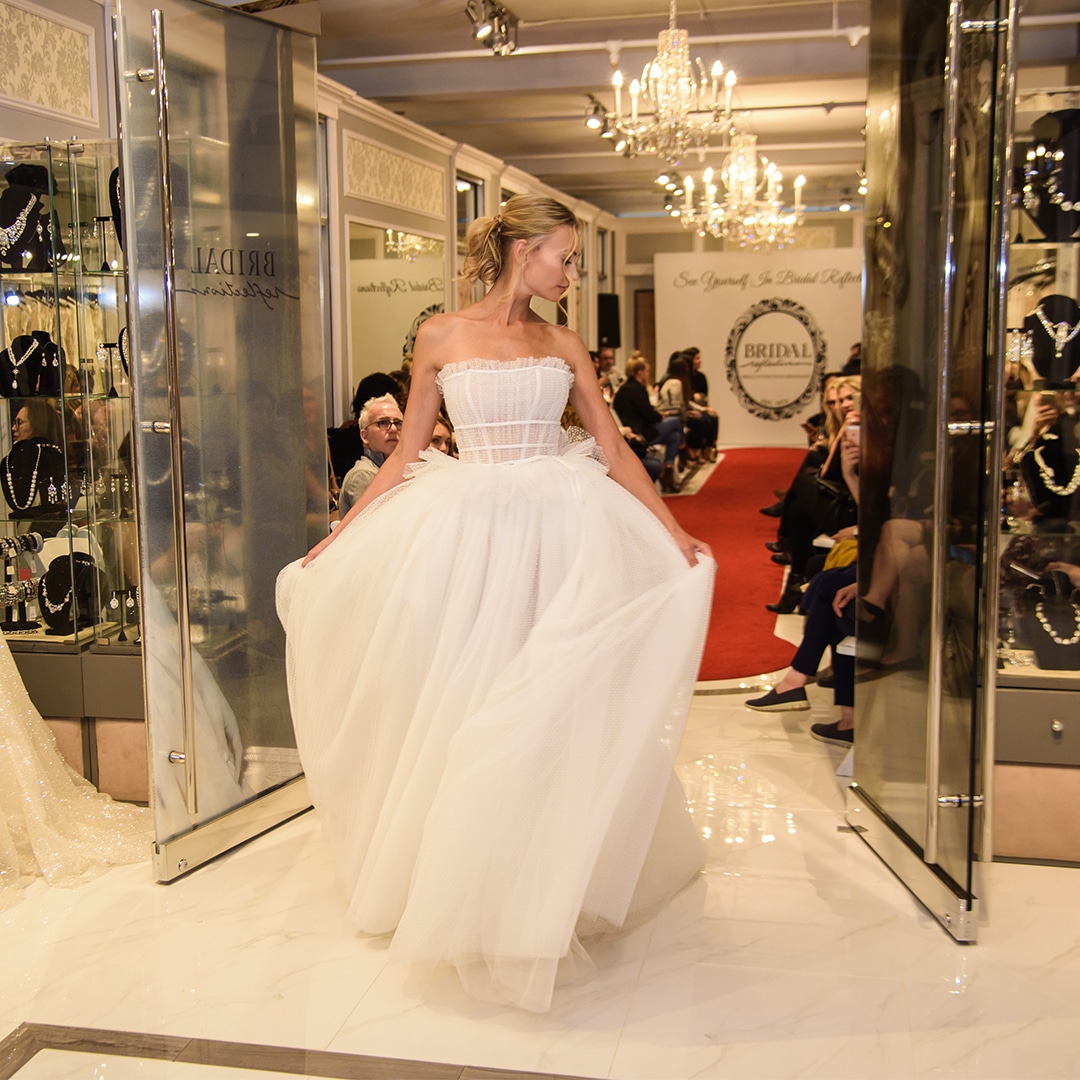 On October 25th, 2017 Bridal Reflections hosted a Galia Lahav fashion show featuring the newest “Florence By Night” collection. The collection had just made its debut at New York Bridal Fashion week at the beginning of the month and this was the first time brides in New York could see these brand new dresses up close and on our red carpet runway. Our guests were treated to champagne and couture!