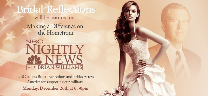 NBC Nightly News with Brian Williams featured a segment on Bridal Reflections and our contribution to the Brides Across America program on Monday, December 26th.