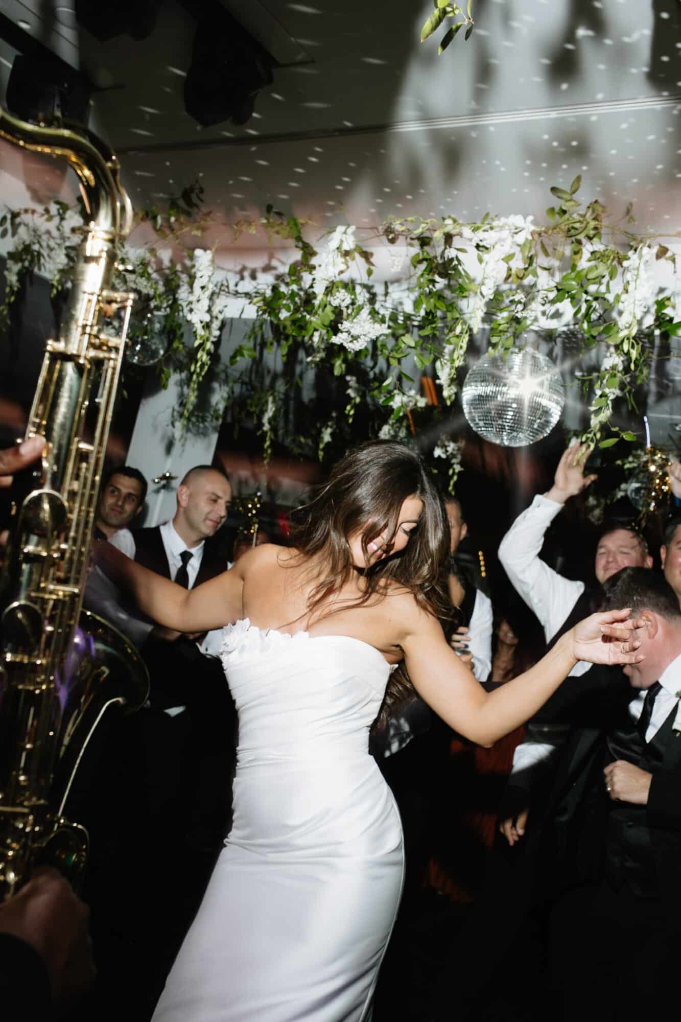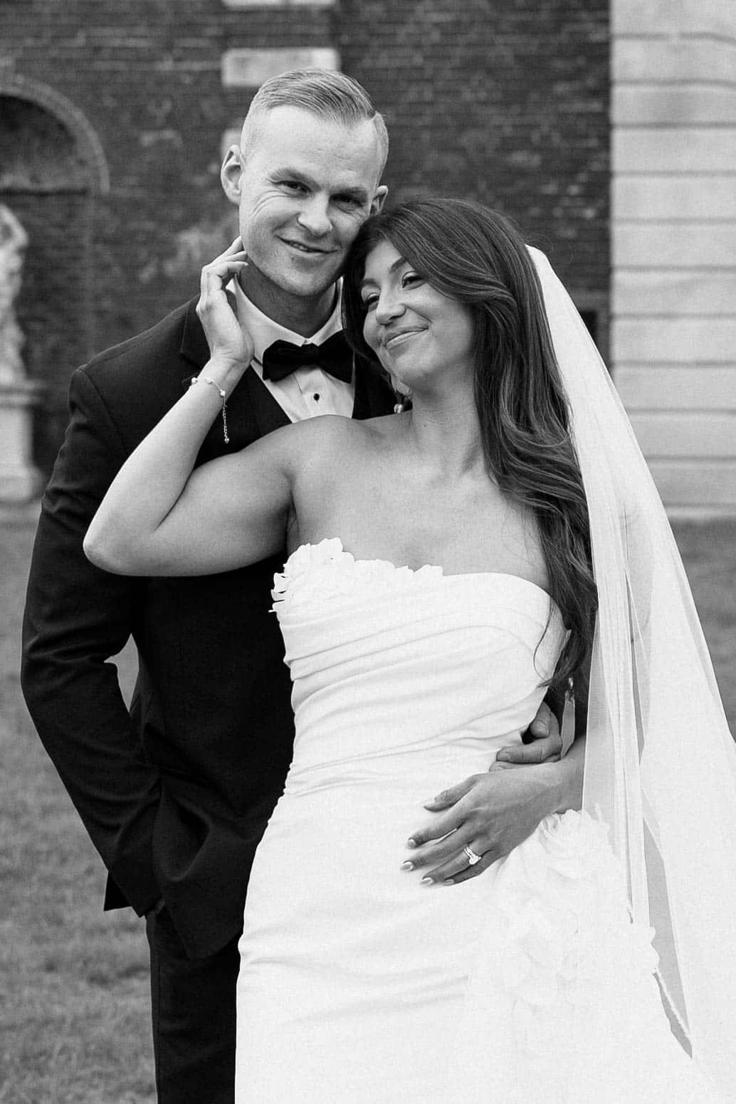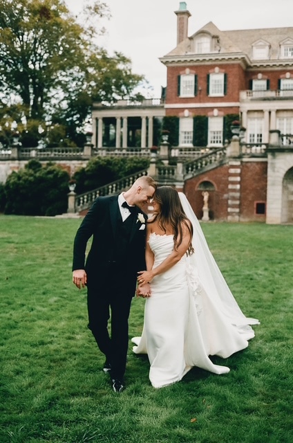 The gown’s versatility made it ideal for Alyssa’s elegant wedding settings. Her ceremony at Old Westbury Gardens felt like a scene from a storybook, with the venue’s historic architecture, manicured gardens, and timeless beauty providing the perfect backdrop for such a regal bridal look. The celebration continued at Harbor Club Prime, where refined waterfront elegance set the tone for an unforgettable reception.