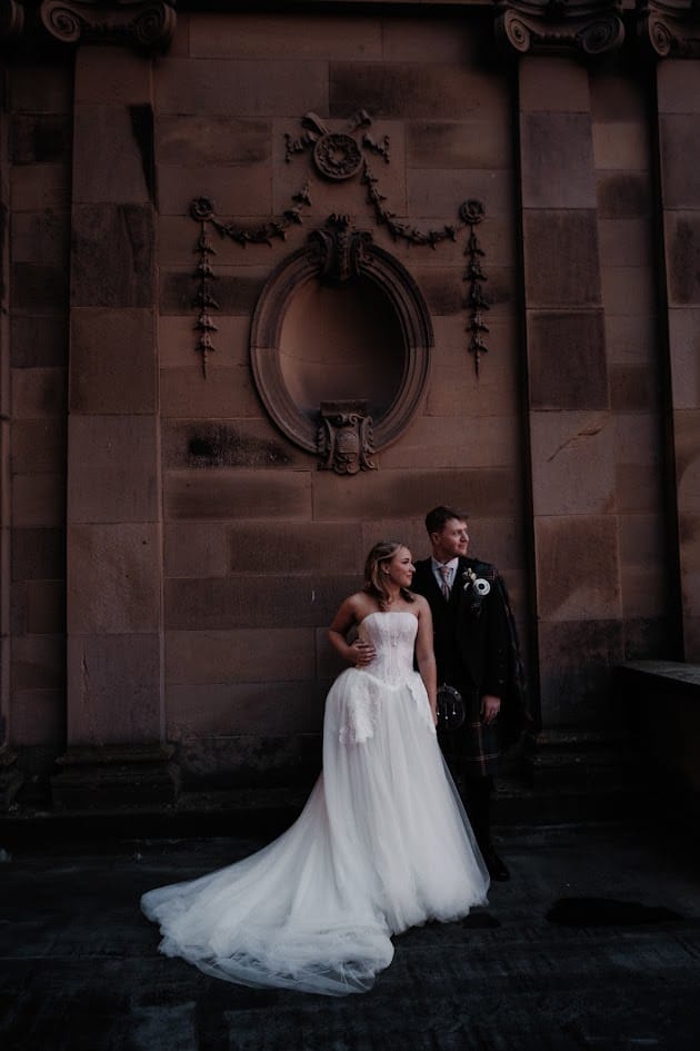 The day was beautifully captured through photography and videography by Harvey Films, whose artistry preserved every glance, movement, and detail with a timeless lens. Supporting moments were captured by second photographer In the Name of Love Photography, ensuring no memory went unnoticed. Cameron’s polished bridal look was completed with soft, elegant hair styling by Lox Falkirk and flawless, glowing makeup by Madison Co—the perfect finishing touches to a couture vision.