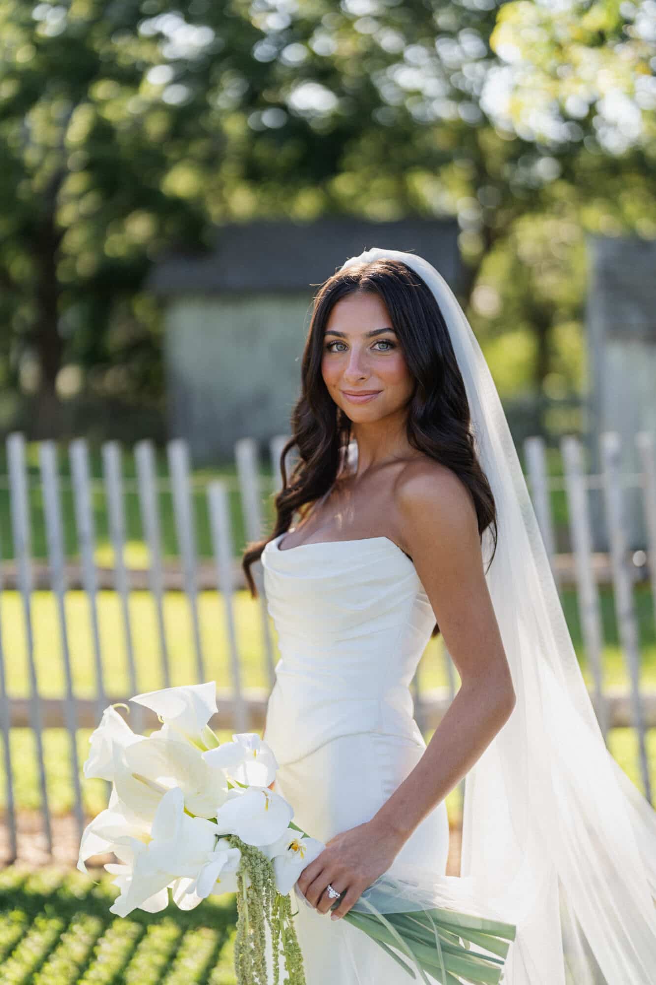 Isabella’s wedding day look was the embodiment of refined minimalism effortless, elevated, and undeniably timeless. She chose Wylie by Milla Nova, a sophisticated strapless wedding gown that proves true luxury lies in impeccable tailoring and exquisite fabric.