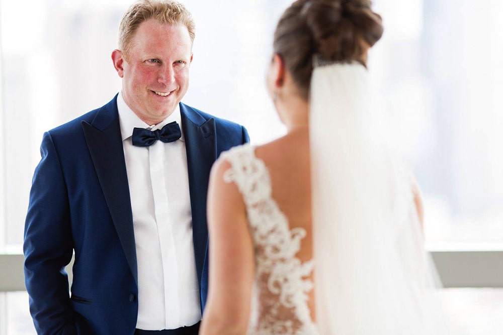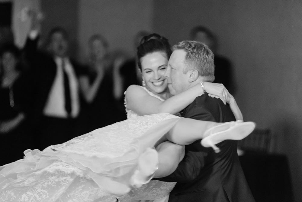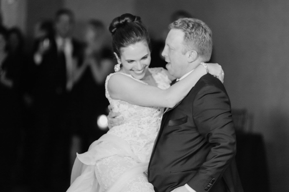 Experience at Bridal Reflections: My family and I had gone to a couple other salons and felt that the service there was impersonal and sometimes often rude that I was very discouraged and not looking forward to continuing to shop for dresses. We ended up at Bridal Reflections because the store carries Ines di Santo dresses and my fiance came across a photo online of Ines di Santo’s “Morning” gown that he swore was “my dress” and he fell in love with it! I wasn’t convinced but promised to try it on. From the moment we arrived at Bridal Reflections, everyone was so warm and friendly and my consultant, Mary Jo, and made my mom, sister, and I feel so at ease and special right away that my nerves disappeared. When I tried on the Morning gown, I was so surprised that I loved it more than any of the other several dresses I had tried at other stores. During my fittings, my tailor, Noel, was so kind, quick and knowledgeable and he and Vera worked to add intricate beading to the bodice of my gown. The morning of my wedding I was so nervous until I slipped on the dress and my fiance saw me for the first time! I had kept it a secret that he had picked out my dress and he loved it.