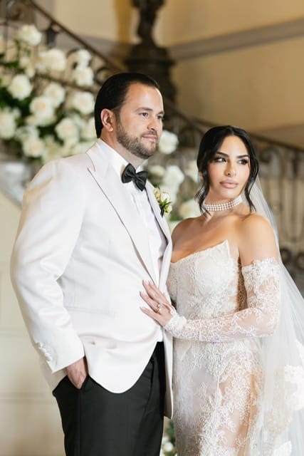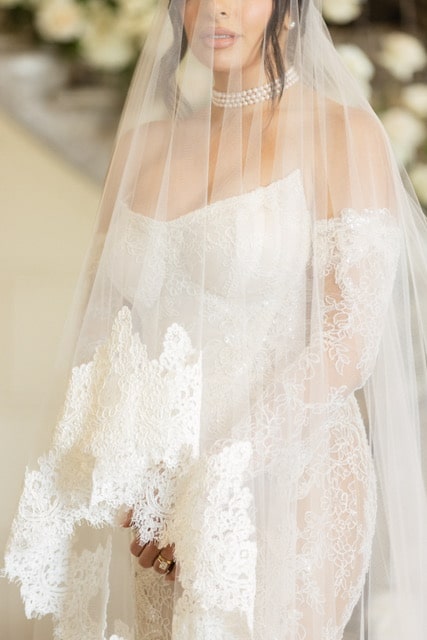 Introducing Kristin, a vision of romance and sophistication in the Scarlett gown from the Galia Lahav Wedding Dress Collection. This utterly romantic dress features exquisite French lace, delicately semi-sheer, crafting a mermaid silhouette that perfectly accentuates Kristin’s figure. The pointy scoop neck corset adds a touch of elegance and allure to the ensemble, while the romantic French lace long gloved sleeves add an air of timeless charm.