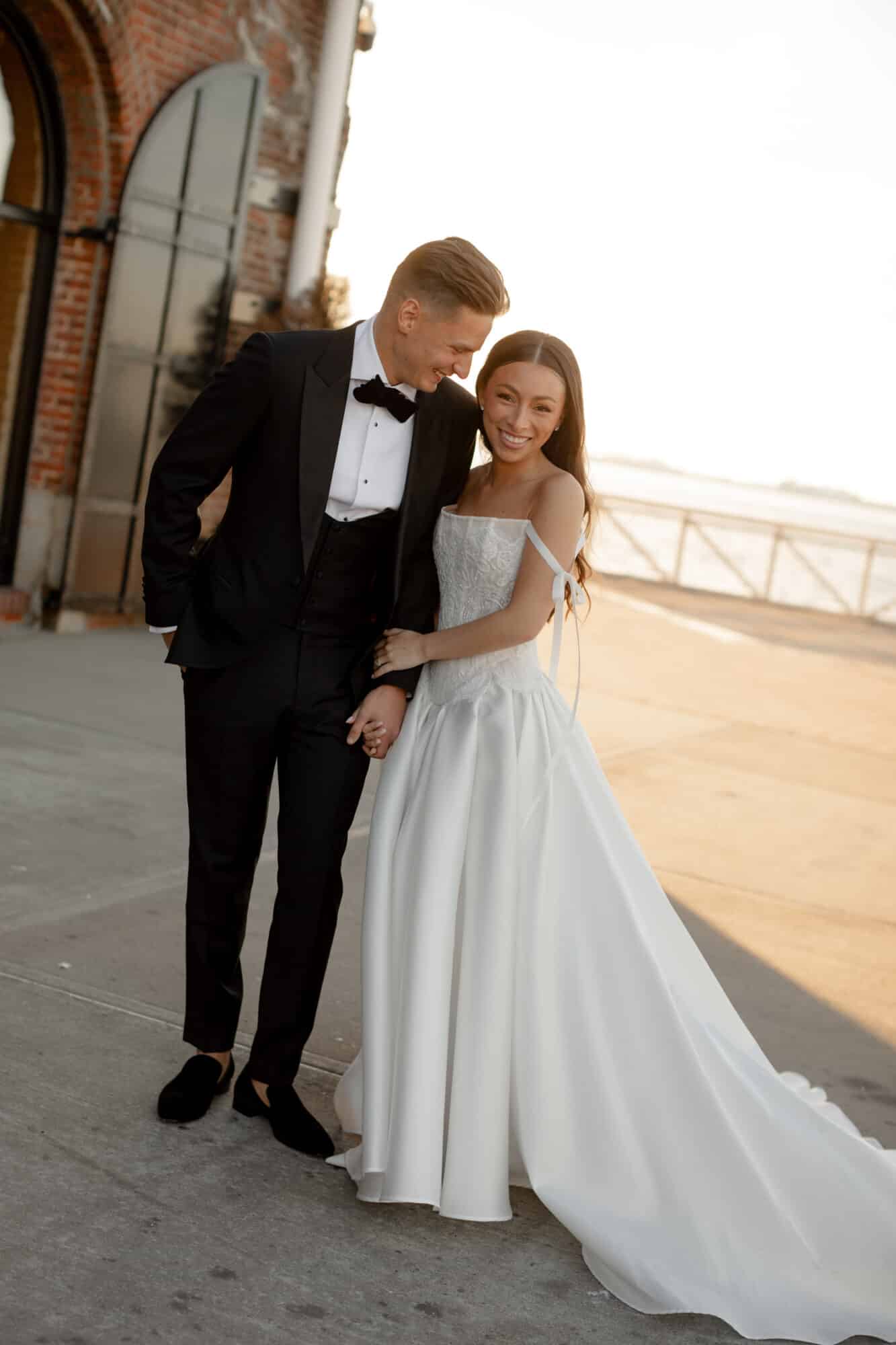 Set against the breathtaking waterfront backdrop of The Liberty Warehouse, every detail of Lindsay’s day was captured flawlessly by the talented Kate Edwards Weddings. Her radiant beauty was brought to life with glowing makeup by Becca Guidice Makeup and a soft, romantic hairstyle created by Reverie Beauty NYC — perfectly complementing the timeless yet fashion-forward essence of her gown.