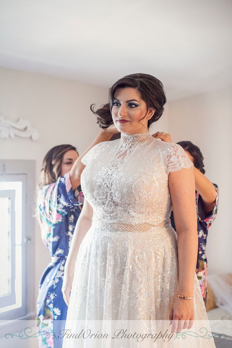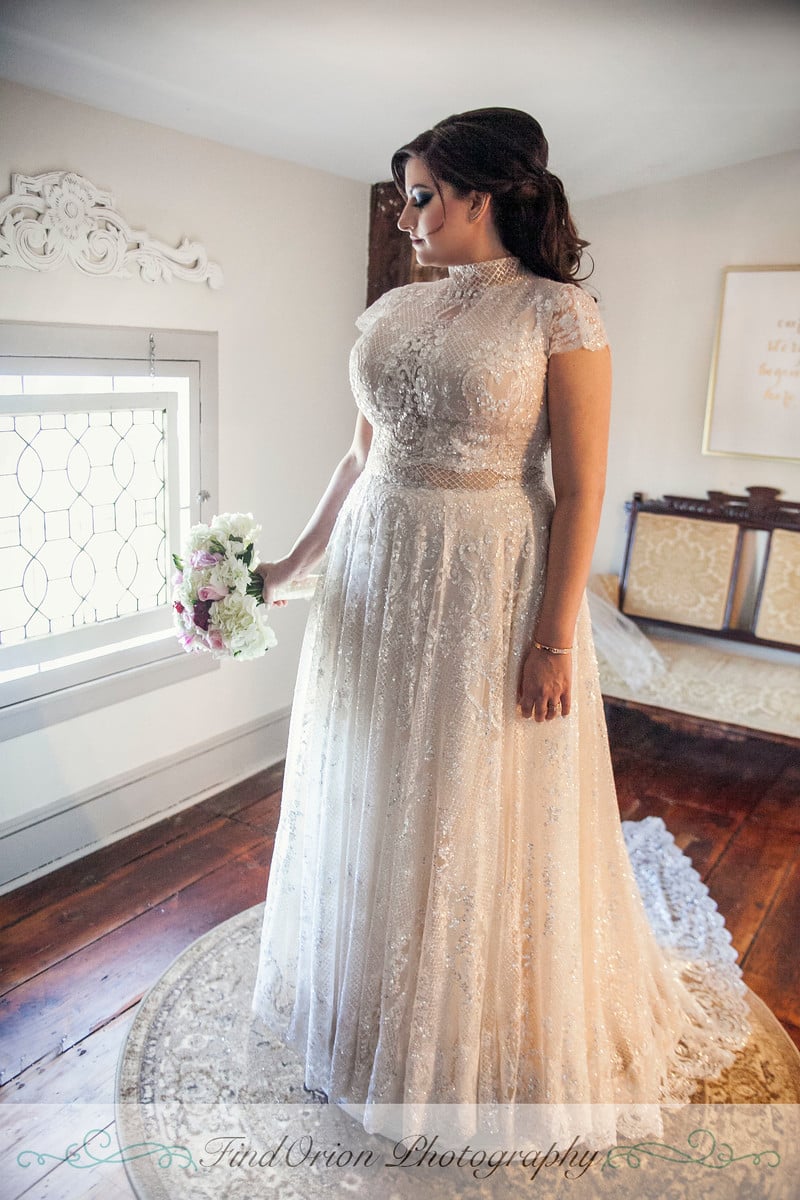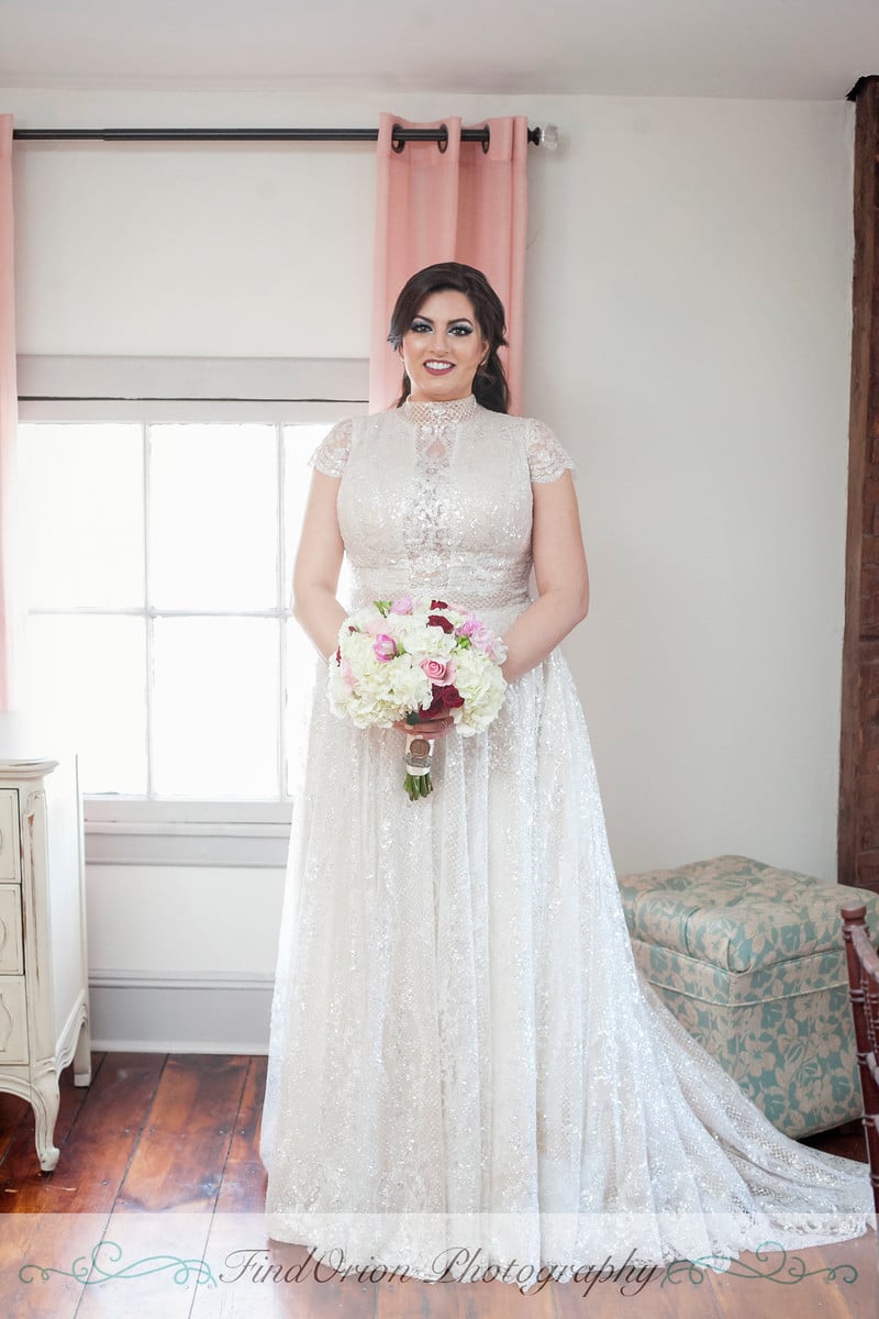 Experience at Bridal Reflections: My very special Godmother wanted to purchase my wedding gown for me, as my wedding gift. I had seen the Gala 803 on pinterest and called Bridal Reflections to see if they carried the gown for me to try on. The associate on the phone told me they were actually having a Galia Lahav trunk show at their 5th ave. salon in a couple weeks, so I happily made an appointment. I was worried that it would be my dream gown, but that it wouldn’t be available in my size, since I am a plus size bride. However, the day of my appointment Galia Lahav herself was in the salon and saw me trying on the gown and heard me worrying about the size. She came over to talk to me and asked me if I loved it – I told her I did, and it was absolutely my dream gown! She then told me they could customize it to work for my body. She took me into a fitting room and measured me herself – she could not have been lovelier, and I could not have had a more surreal experience! Once my dress came in, Vera and Ylena were unbelievably helpful in making sure the dress looked amazing on me – they worked so hard! On my wedding day I felt so beautiful, comfortable, and as Galia kept telling me, “Glam”! The dress was everything I hoped for (and more) and it sparkled like diamonds when I was twirled on the dance floor. The staff at Bridal Reflections was kind, helpful and excited for me throughout the whole process and I cannot say enough good things about them! I will continue to recommend Bridal Reflections to anyone I know looking to purchase a dress – their service was second to none. As for my dress – the photos speak to just how beautiful the final product was!