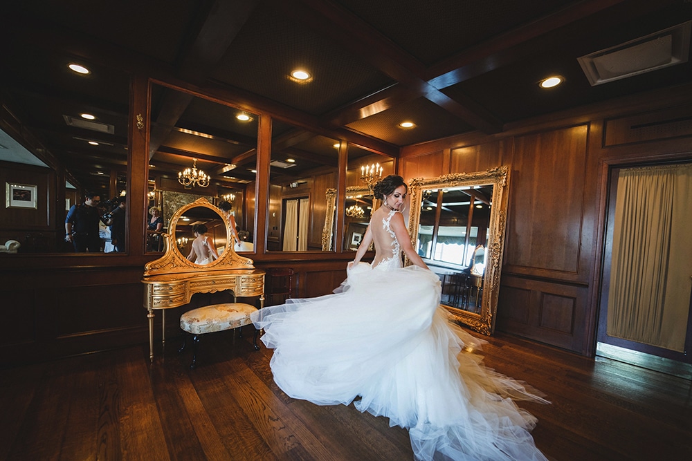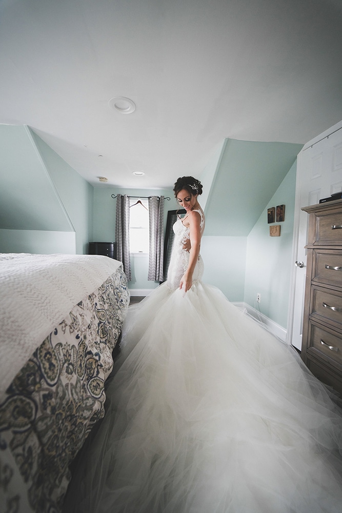 Experience at Bridal Reflections: My first experience trying on dresses was at the Massapequa location because of my budget, but I could not get this Galia Lahav dress out of my head that I saw in a Bride magazine. When I saw the posts about the trunk show, I was so excited to get in! Frances pulled some Gala gowns in my price range and I was ready to make a decision, then she went and pulled MY DREAM DRESS! Right away, I could tell it was out of my budget, but she explained how there is a “New Suzanne” and this is the “Suzanne”… THAT WAS IT! I didn’t want to take it off and knew it was the dress. The manager, Christina, was SO SWEET from the beginning to the end. I never felt uncomfortable because of my budget–actually the complete opposite. The whole staff was so accommodating. My mother couldn’t be there because she was in the hospital, and even during the trunk show, the staff showed patience and allowed us to FaceTime and take photos. I can’t say enough good things! Zizi even came and dressed me that day and cut my dress for the bustle! She was amazing and a lifesaver all day.