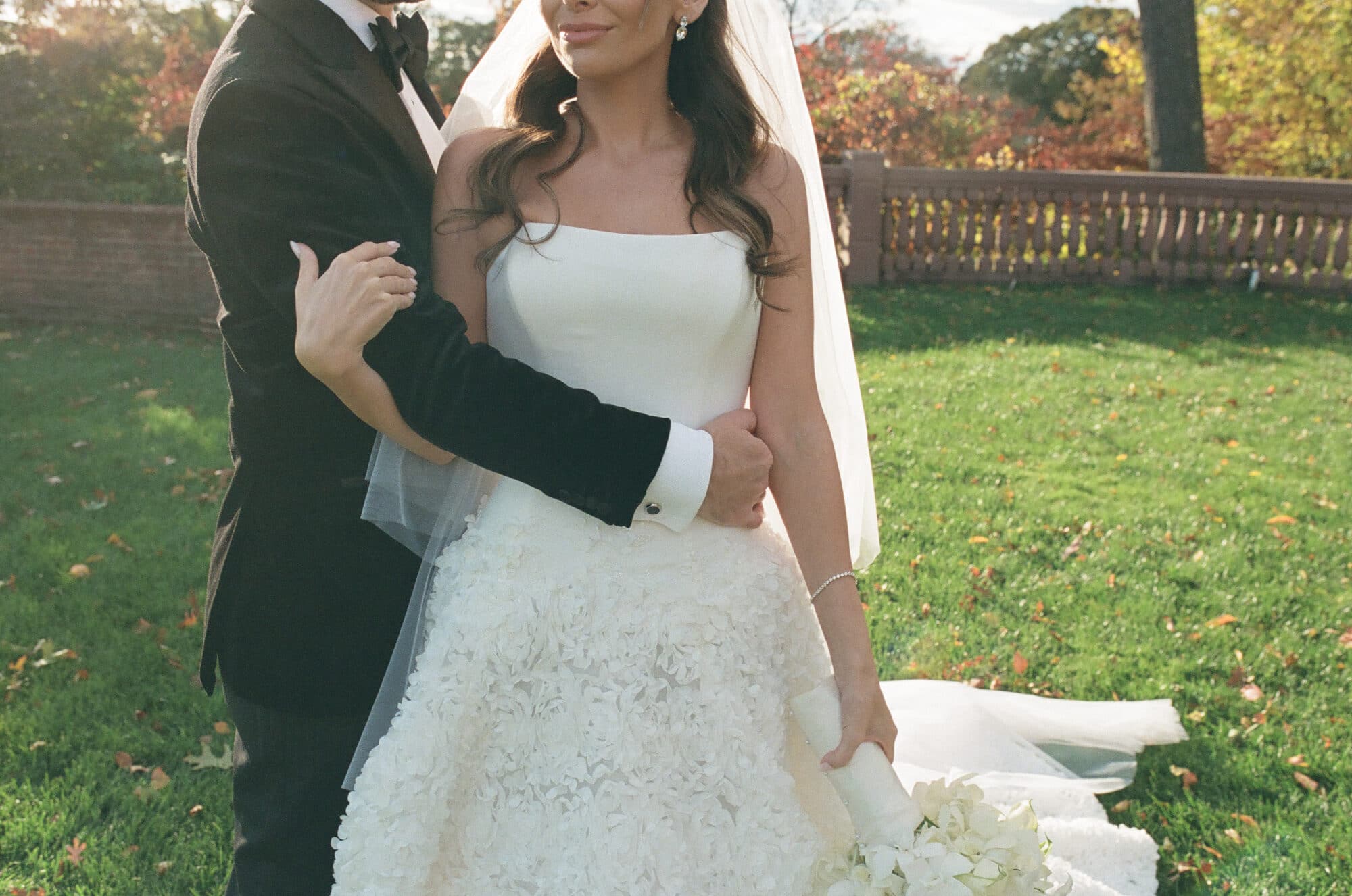 Rachel’s wedding day at Pine Hollow Club provided the perfect backdrop for such a statement look. The venue’s lush grounds and elegant interiors elevated the entire aesthetic, complementing the gown’s opulence and allowing every detail to shine in a setting that felt both grand and intimate.