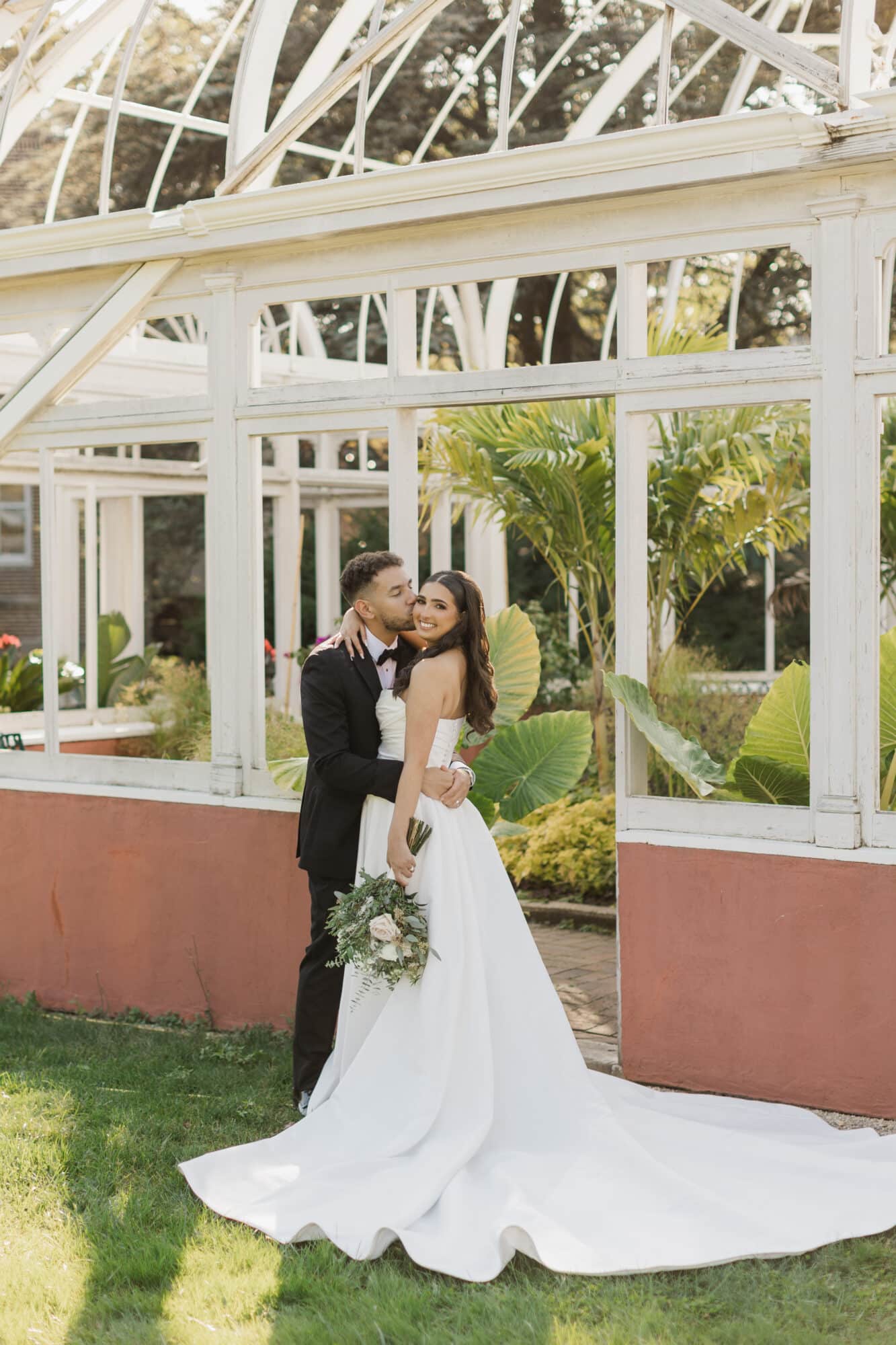 Samantha’s beauty look complemented the gown’s sophistication perfectly. Hair and makeup by Safie Salon Beauty delivered a polished, glowing finish that enhanced her natural beauty while maintaining the clean, elevated aesthetic of the day.