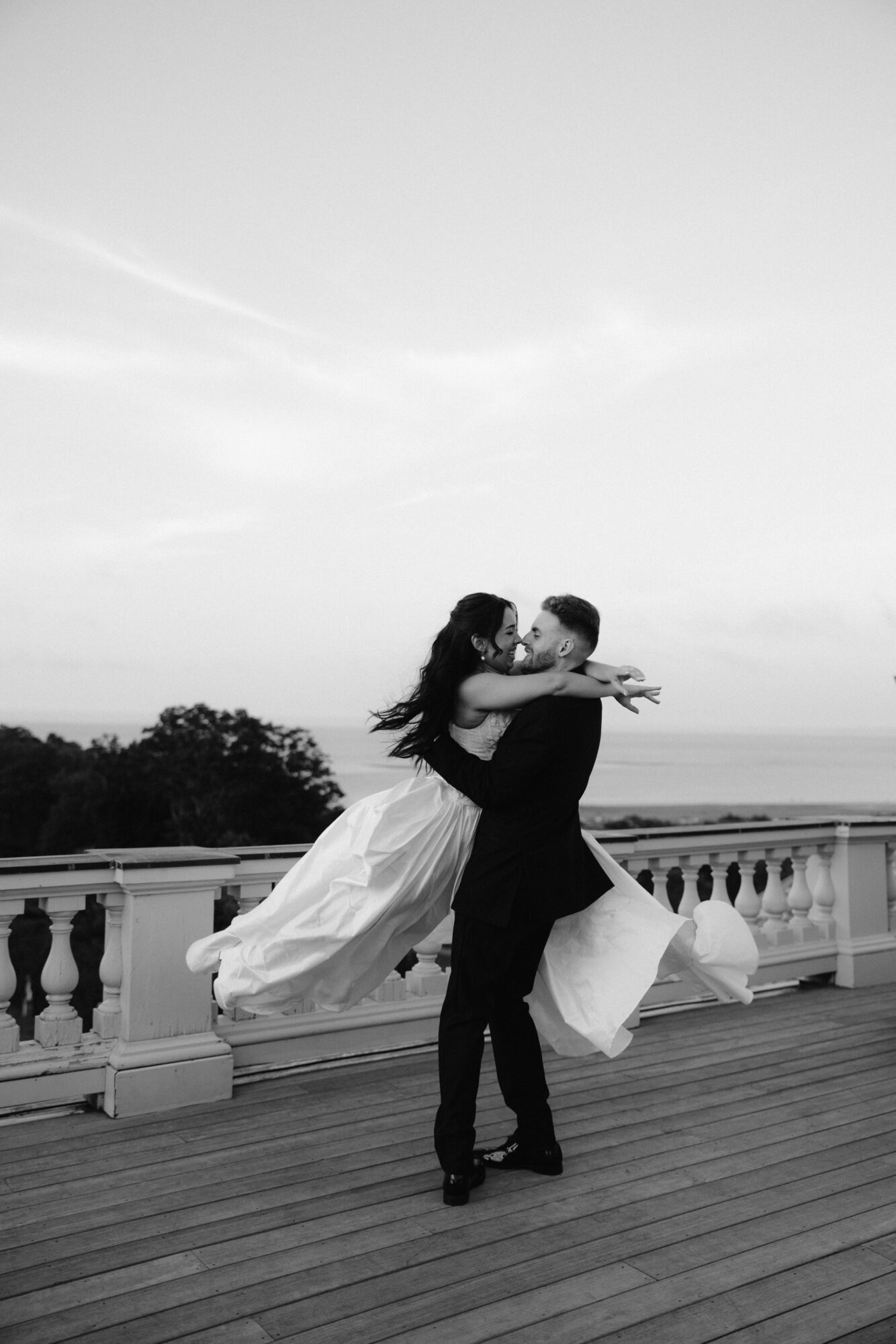 Captured beautifully by Sierra Archer Photo, Sarah’s bridal portraits exude confidence, femininity, and joy. From close-up details of the embroidered bodice to sweeping shots of her billowing skirt on the Crane Estate’s historic grounds, each image tells the story of a bride who wasn’t afraid to be bold, beautiful, and entirely herself. The cinematic artistry of Trophy Wives co brings even more magic to life with a wedding film as enchanting as Sarah’s gown.