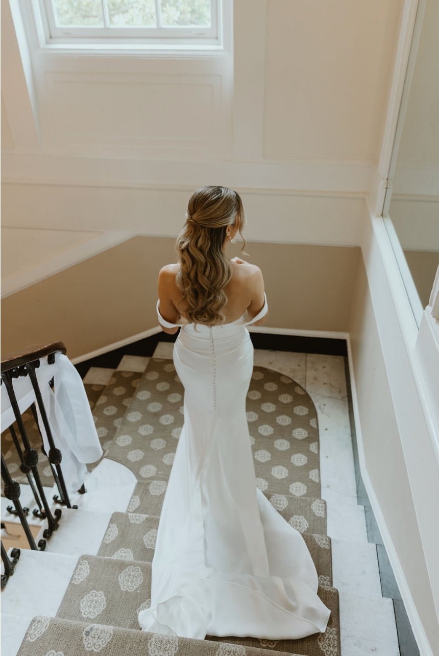 Bringing her look to life, Amanda Perry styled her hair into a softly swept style that balanced modern sophistication with romantic flair. Her flawless makeup by Angela Zavala enhanced her natural beauty, allowing her radiant smile and sparkling eyes to take center stage.