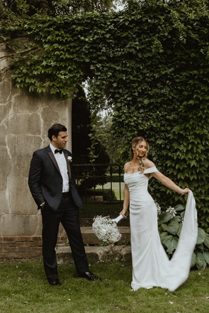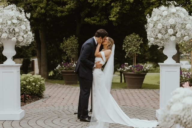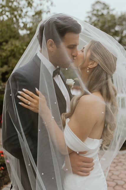 Stephanie’s choice to embrace a minimalist bridal style only enhanced the elegance of her wedding, held at the timeless and romantic The Mansion at Oyster Bay. This historic Long Island venue, with its manicured gardens and grand architecture, provided a breathtaking backdrop for Stephanie’s sleek silhouette and luminous bridal glow.