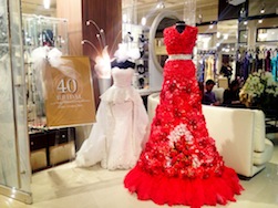 One year ago this month we celebrated our 40th Anniversary with a party at our Fifth Avenue salon! Can you believe this red gown is made entirely out of fresh flowers? Thank you to Mark at Flowers By Topaz for making this beautiful creation!